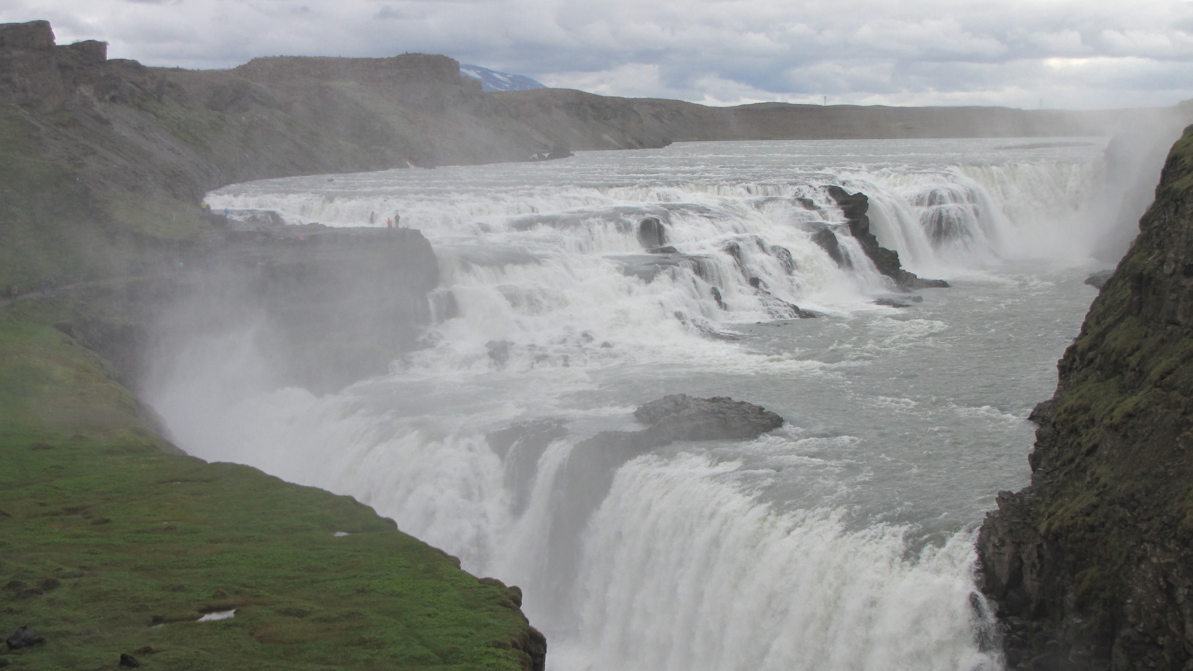 Reykjavik is the land of midnight soon so make sure you have eye covers – it takes some time getting used to seeing the sun at all times, even if you happen to wake up at 2 AM. Luckily we got over our jet lag rather quickly and set off to see the Golden Circle with time remaining for visiting all kinds of souvenir shops along the way. The complete Golden Circle driving time takes you only 2-3 hours with 3 major stops along the way. The first stop was Thingevellir, about 45 minutes drive from the downtown area. The highways are quite well maintained there and not crowded at all, even though we were there at the peak of tourist season! Thingvellir is famous for the Continental Divide where the Eurasian and North American plates meet – these are now moving apart at the rate of 2 cmper year! The Thingvellir park also gives an option to go scuba diving in the lake between the 2 tectonic plates…even though we did not get to do it, we have been told it is a wonderful experience…the water is so cold and so clear you can’t even make out whether you are looking at the surface of the ocean floor. The first Parliament of Iceland was established here…there are several nice trails to walk around. You also have the option of trekking to waterfalls with gorgeous scenery all around, reading about history, and much more. The next stop for the golden circle was Geysir which is about 45 minutes from Thingevellir. Geysir is what has given the name “geysers” to everything in Yellowstone and around! The area is bubbling with geothermal activity – no seriously – however, most of the geysers are dormant except one…Strokkur is the only one that erupts and it puts on an amazing show every 8-10 minutes. The others are also nice to see because they are gurgling and releasing (foul-smelling) gases, with pools of water of some very interesting colors, thanks to the various minerals dissolved in there. Geysir is truly amazing but you can be done there in around an hour or so. The last but not the least destination in the Golden Circle was Gullfoss.